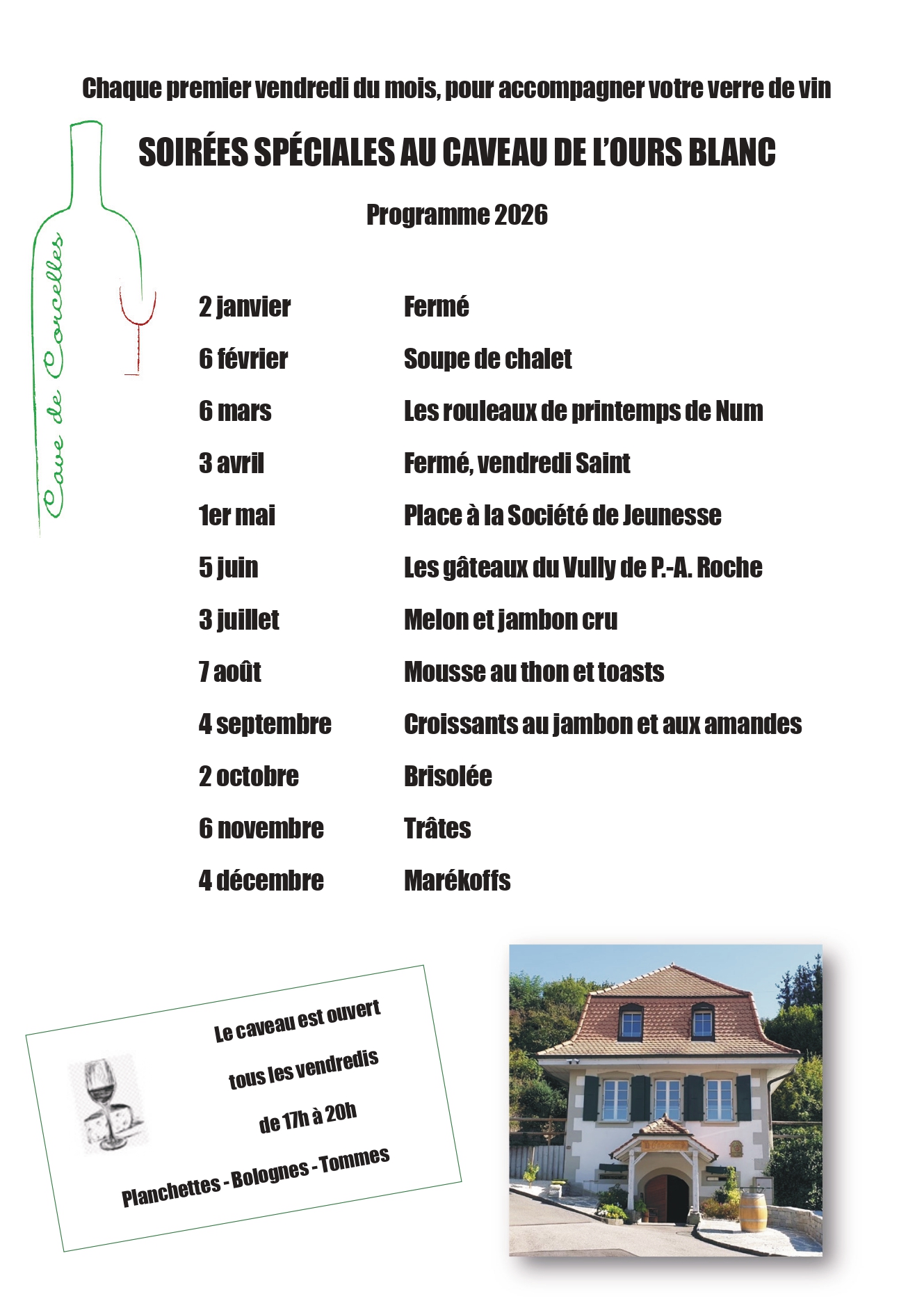 Le caveau est ouvert tous les vendredis de 17h à 20h.